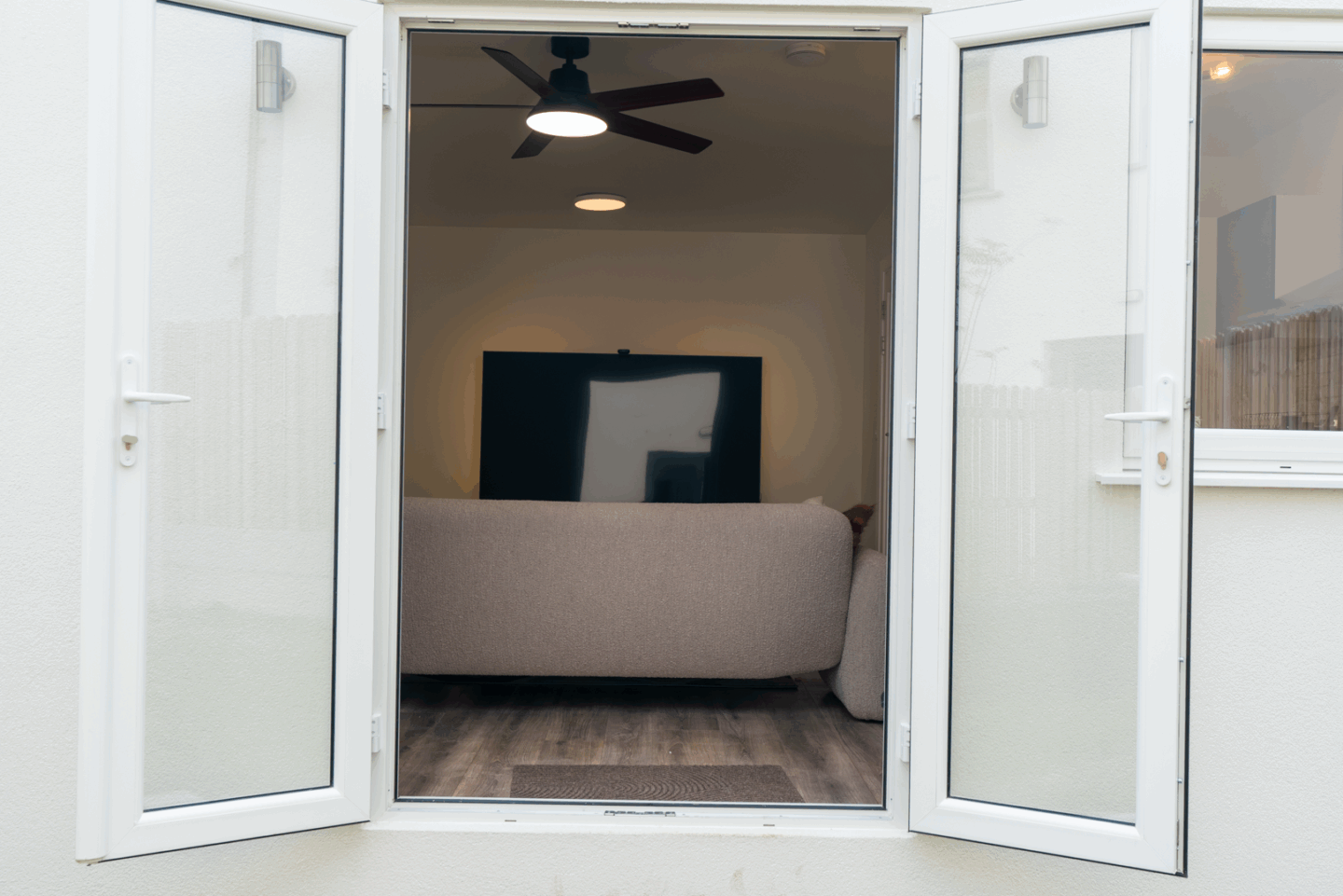 - Bathroom: Includes a shower, vanity unit, and toilet, making the garden room self-sufficient and fully functional.