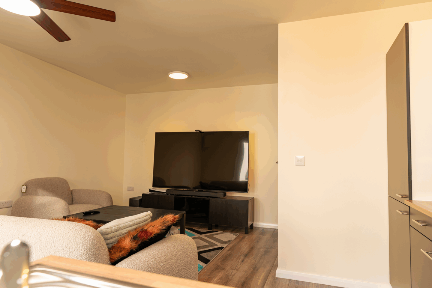 - Flooring: 8mm laminate flooring throughout the open-plan space for a stylish and practical finish.