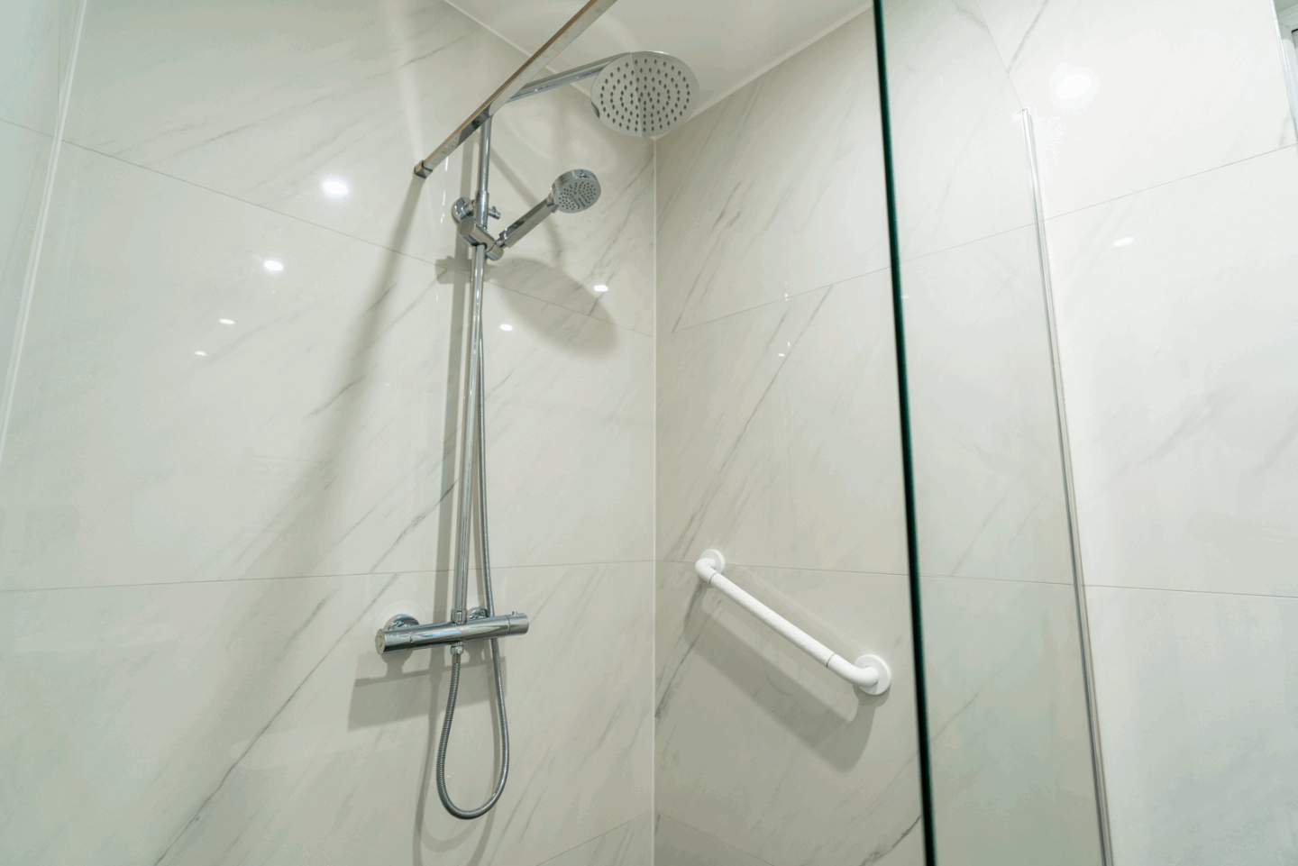 - Bathroom: Fully tiled wetroom with a glass panel shower, designed for elder accessibility with slip-resistant finishes and ergonomic fixtures.