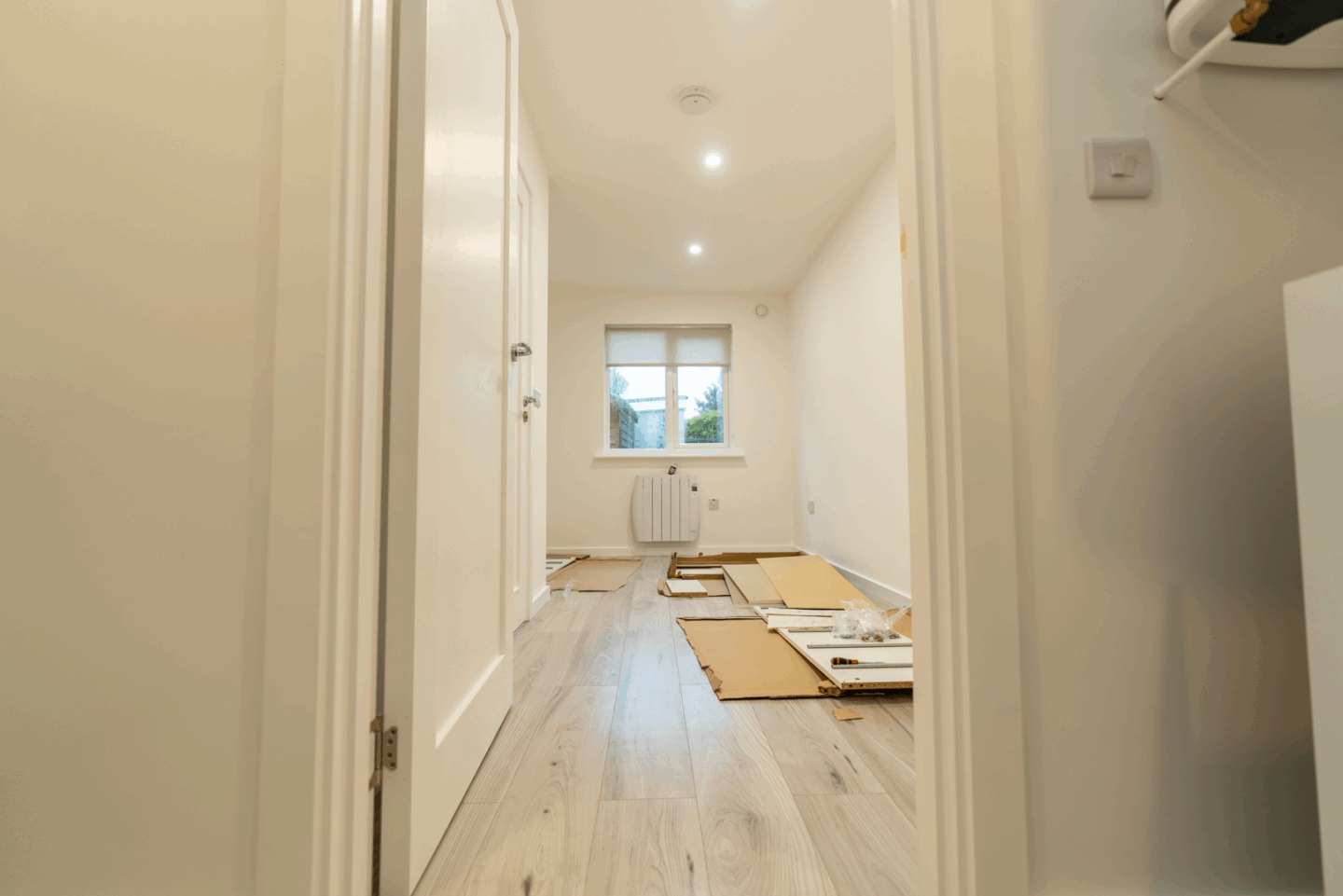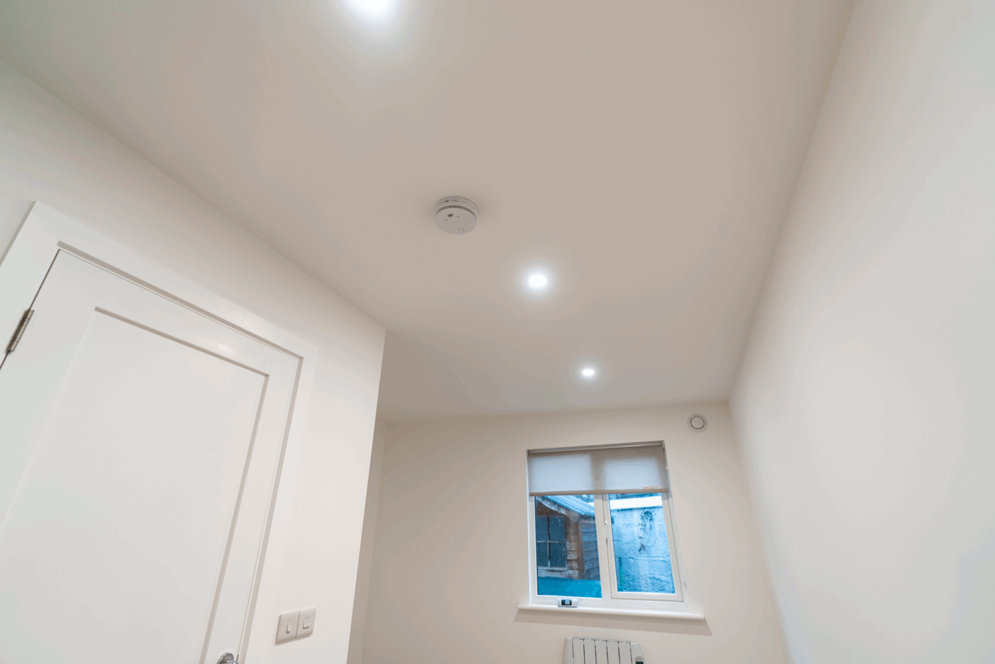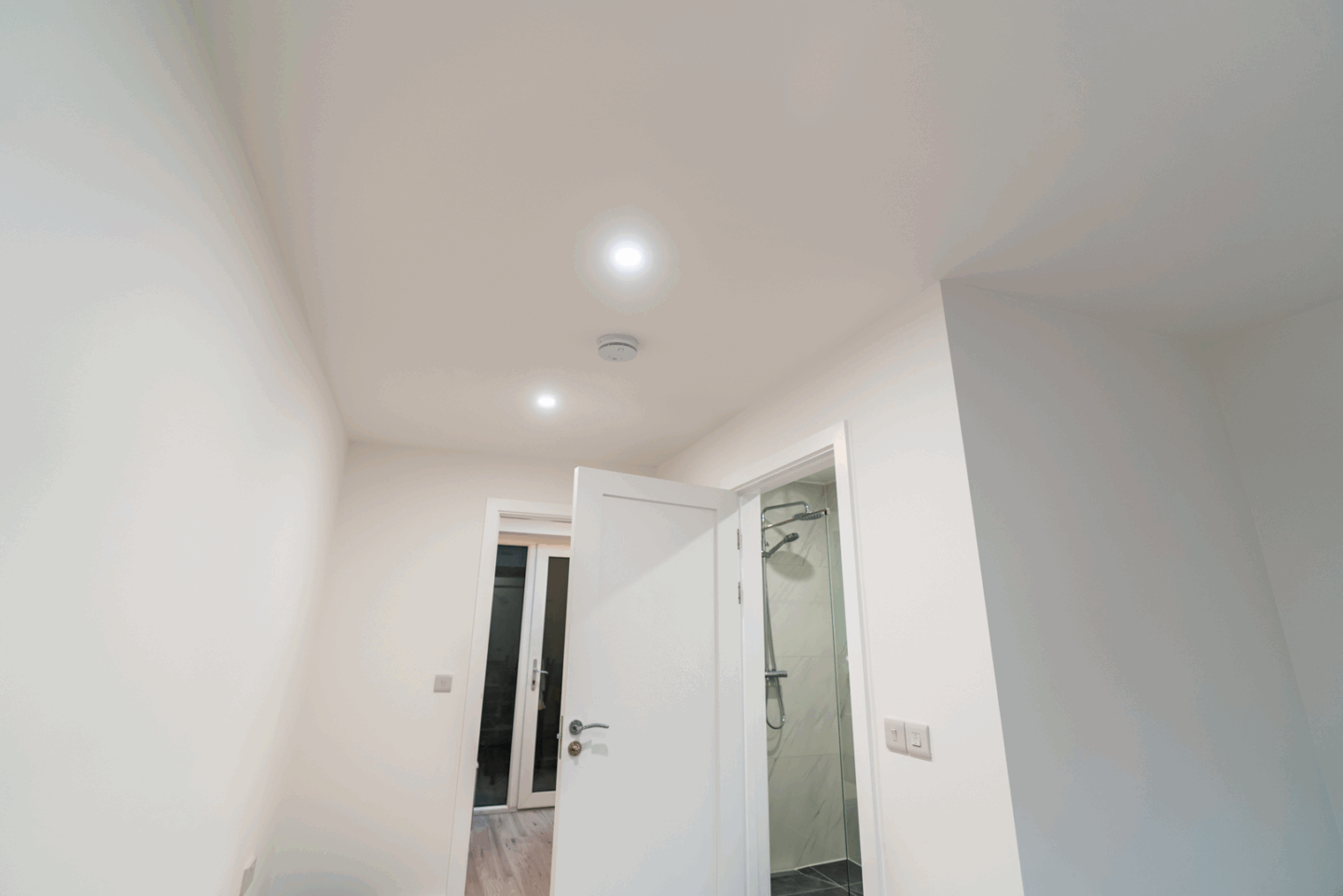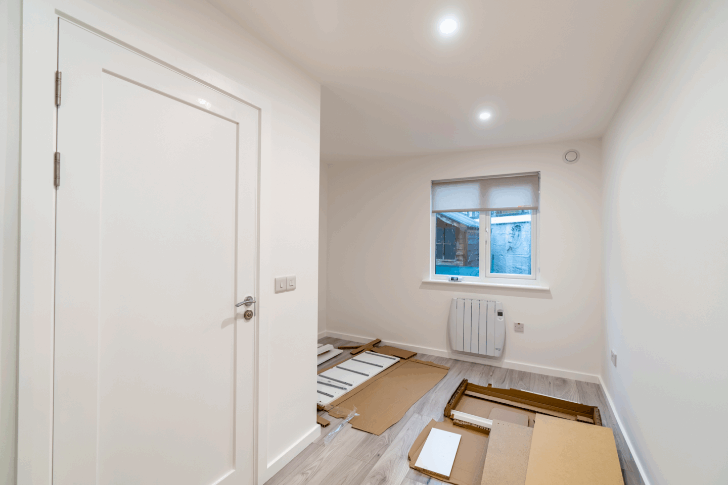 The roof is finished with torch-on felt, providing a long-lasting, weatherproof covering. The external walls are finished with acrylic render, offering a modern, clean aesthetic with low maintenance requirements. One side of the extension, adjacent to a neighboring property, is finished with metal cladding, chosen for its durability and minimal upkeep. The building is constructed as close as 10 cm to the existing wall, maximizing usable space while complying with building regulations and maintaining structural safety.