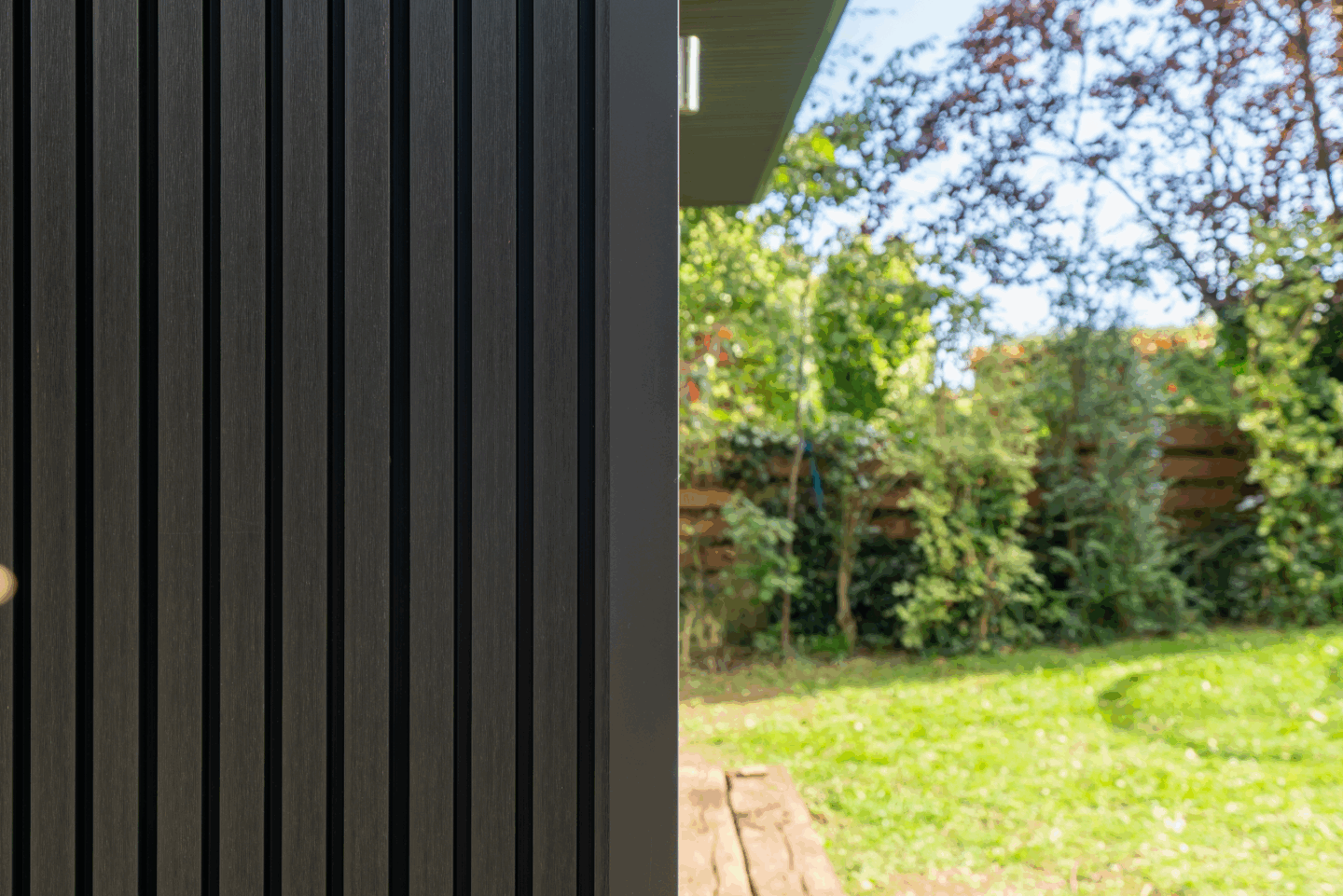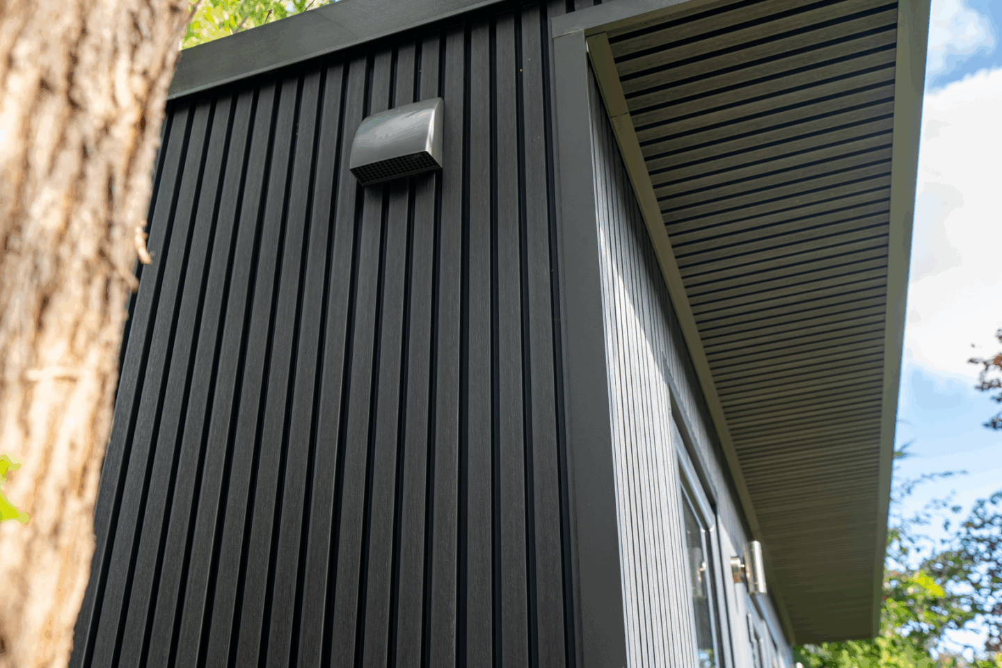 Exterior walls are finished in WPC (Wood-Plastic Composite) composite cladding, a highly durable and sustainable material that resists moisture, UV damage, and rot. The cladding creates a warm, natural look while requiring minimal upkeep compared to traditional wood. - Thermal & Acoustic Insulation