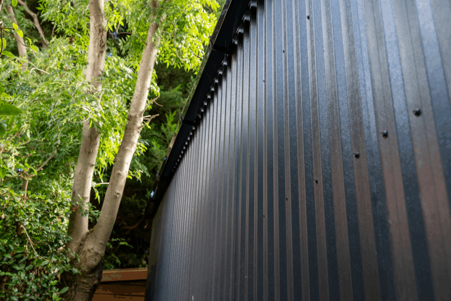 The unit is topped with a metal eaves roof, providing long-term protection against weather conditions while maintaining a sharp and modern profile. The metal roof system is low-maintenance, fire-resistant, and ensures durability against wind, rain, and snow loads. - Cladding