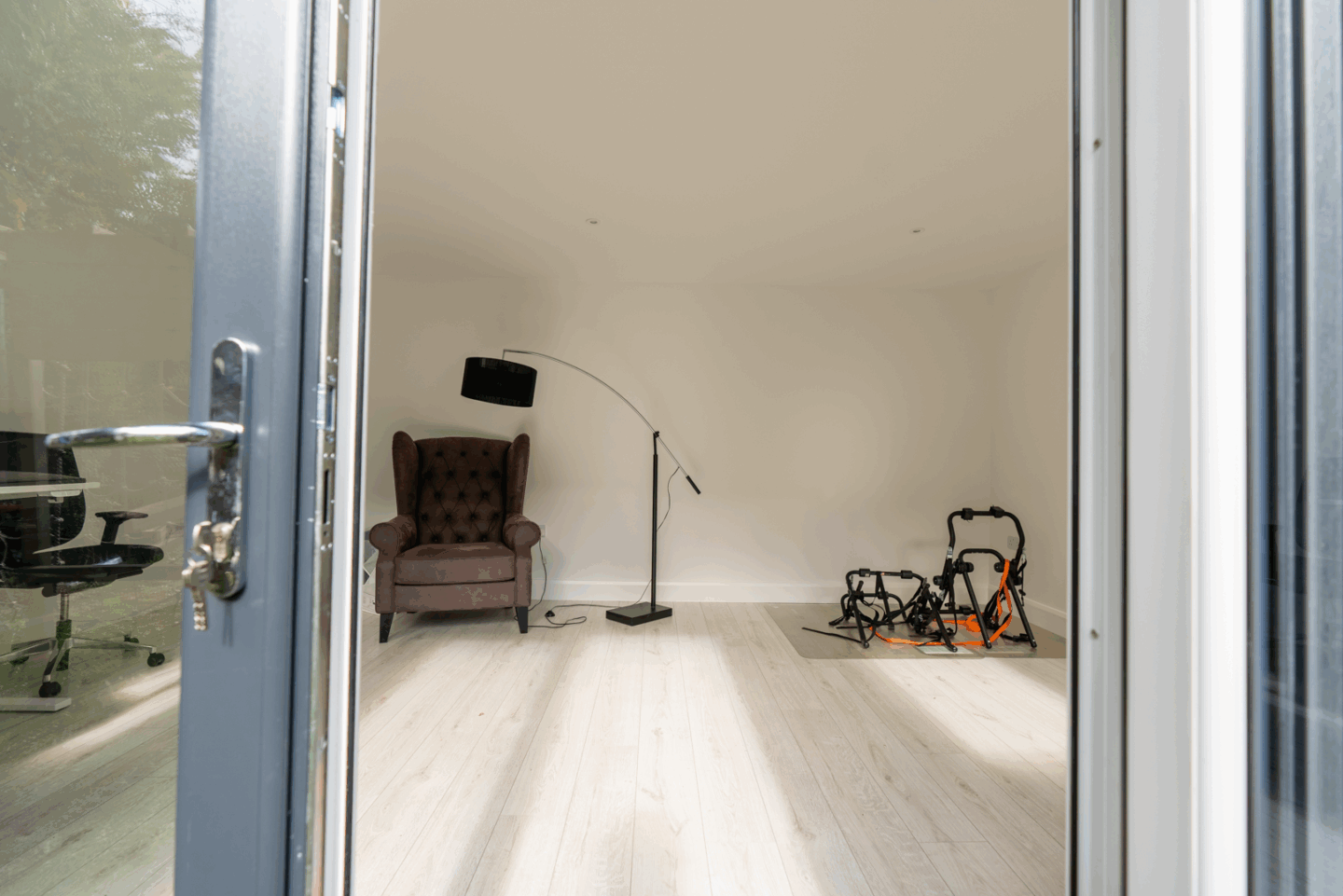 The living space is finished with high-quality laminate flooring in Pamphylia Oak, offering a natural wood aesthetic, durability, and easy maintenance. - Skirting