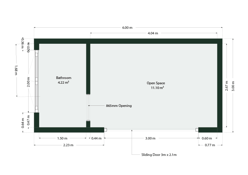 Main Living Area: Designed as a relaxation zone with space for sofa, TV, and feature stove. Minimalist layout maximises natural light and openness.